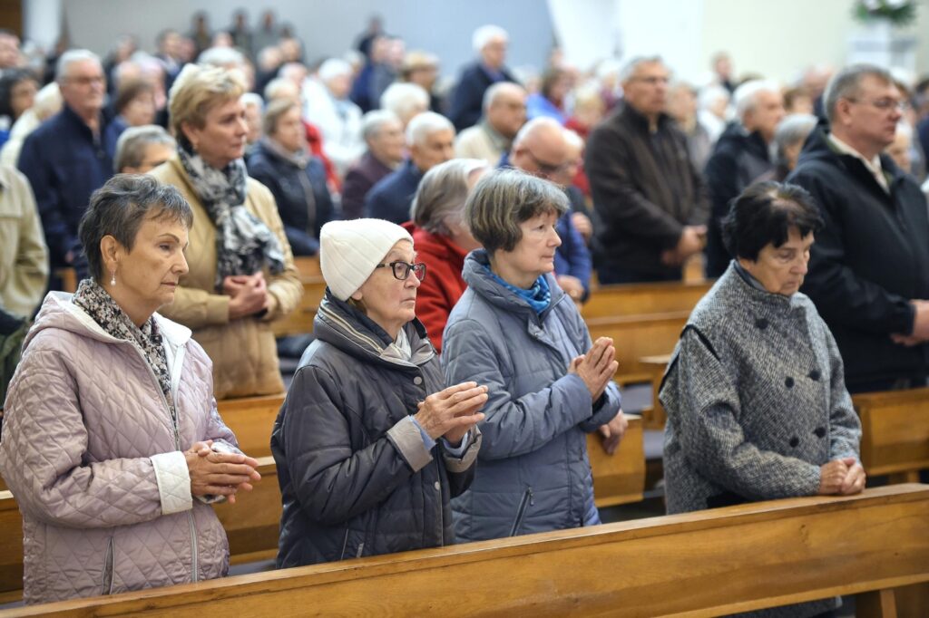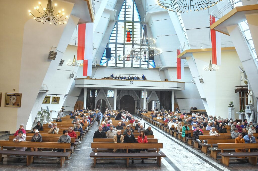Kolejnego dnia, w niedzielę, odbyło się świętowanie wraz ze wspólnotą parafialną. Spotkaliśmy się na Mszy Świętej o godz. 10:00, której przewodniczył o. Ignacy Proszek. Po jej zakończeniu w salce pod kościołem przygotowane było Agape, aby każdy mógł spędzić wspólnie czas i powspominać wiele wydarzeń, które miały miejsce przez te 50 lat. Siostry karmelitanki przygotowały na to wydarzenie tort, który podkreślił wyjątkowość świętowania.