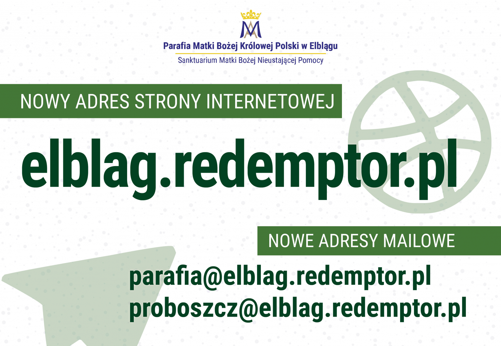 W ostatnim czasie uległa całkowitej zmianie, po to, aby była bardziej czytelna i dostępna dla wszystkich zainteresowanych naszą parafią. Zmianie uległ również jej adres: od tej pory będziemy tutaj: elblag.redemptor.pl.