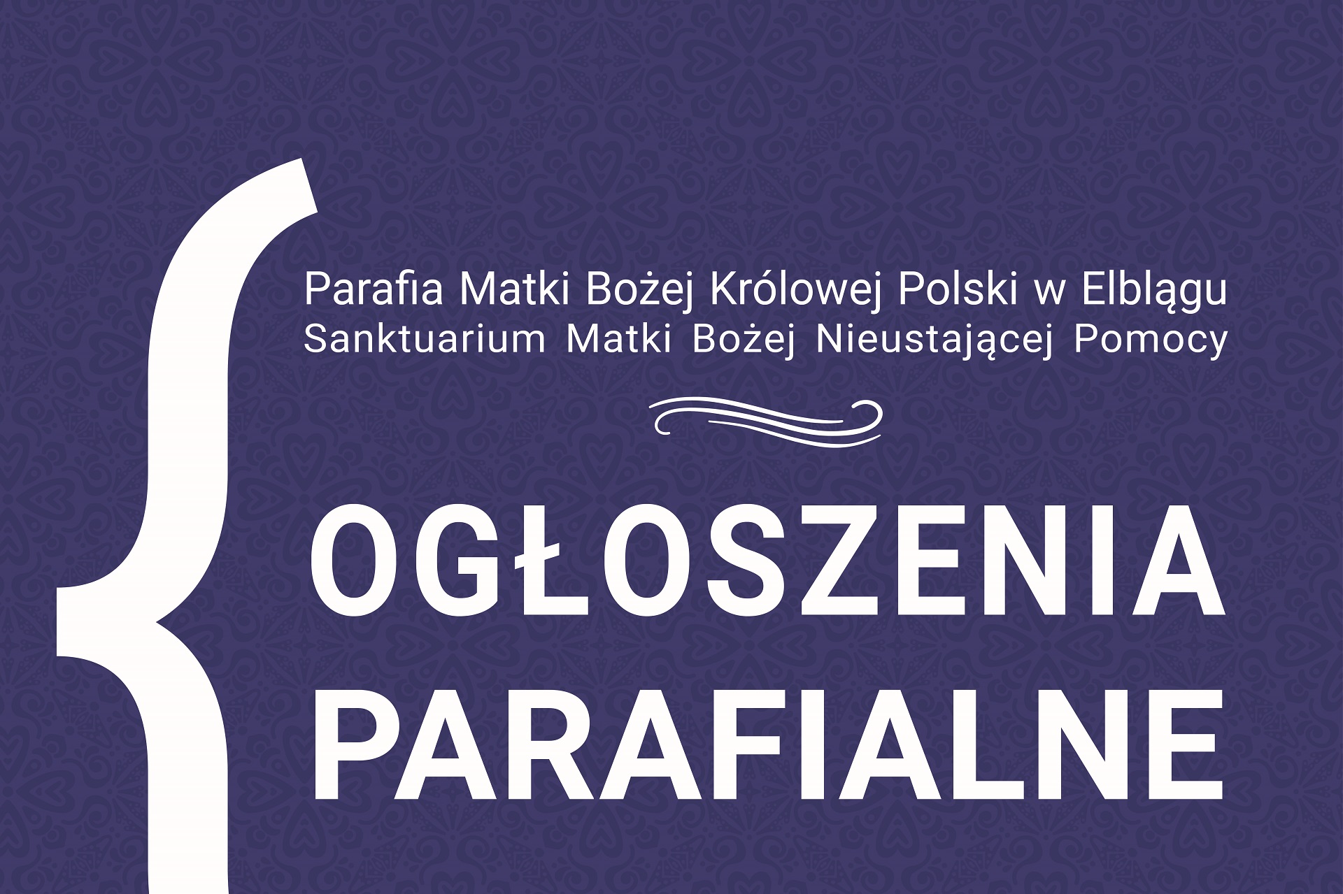 • Godz. 17.30 Nowenna do Matki Bożej Nieustającej Pomocy. Prosimy o składanie próśb i podziękowań, które zostaną odczytane w czasie nabożeństwa.