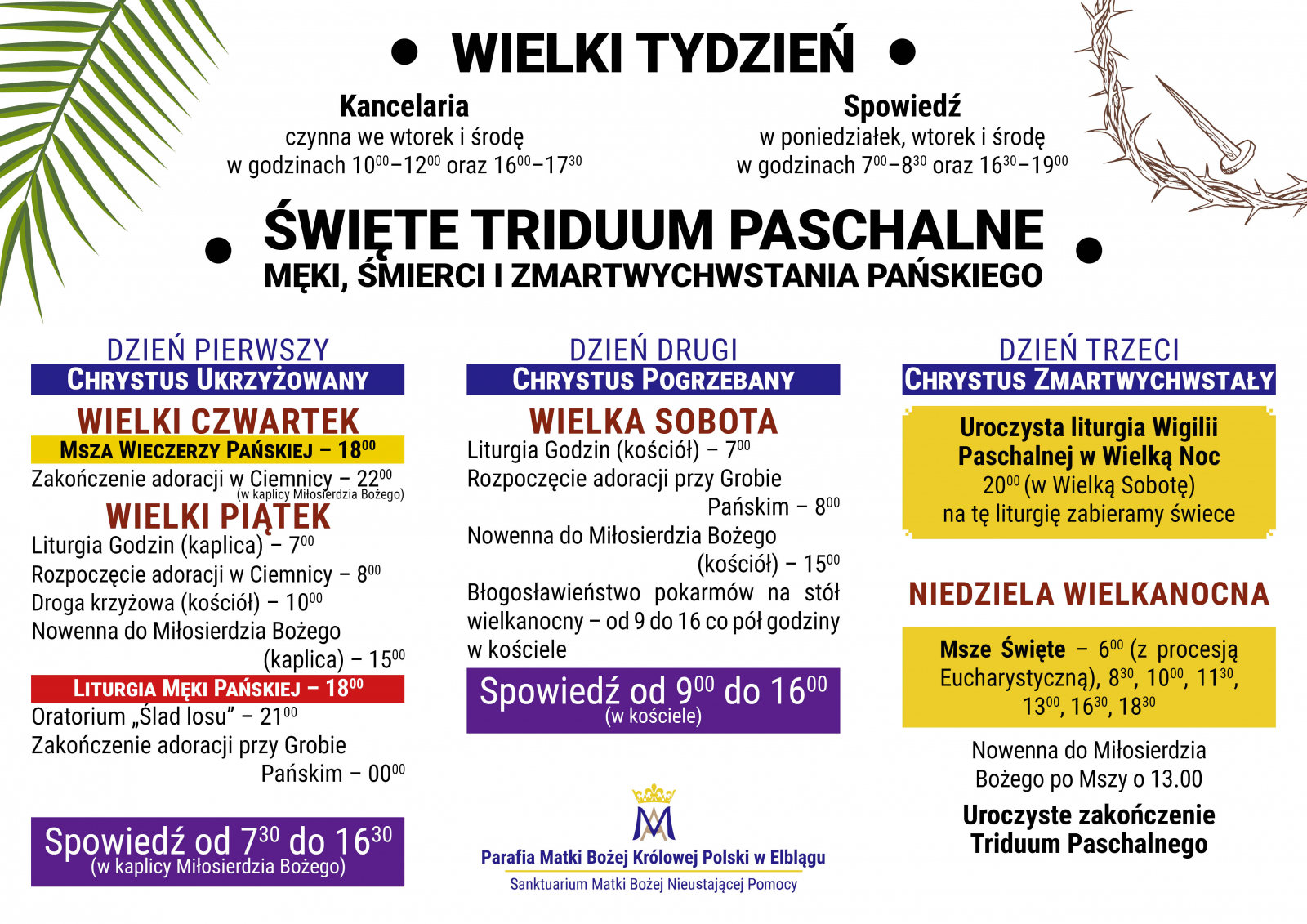 Ogłoszenia Święte Triduum Paschalne || 2022 by admin@redemptor 10 kwietnia 20229 kwietnia 2022 Nawigacja wpisu Ogłoszenia parafialne – 10 kwietnia 2022 r.Ogłoszenia parafialne – 17 kwietnia 2022 r.